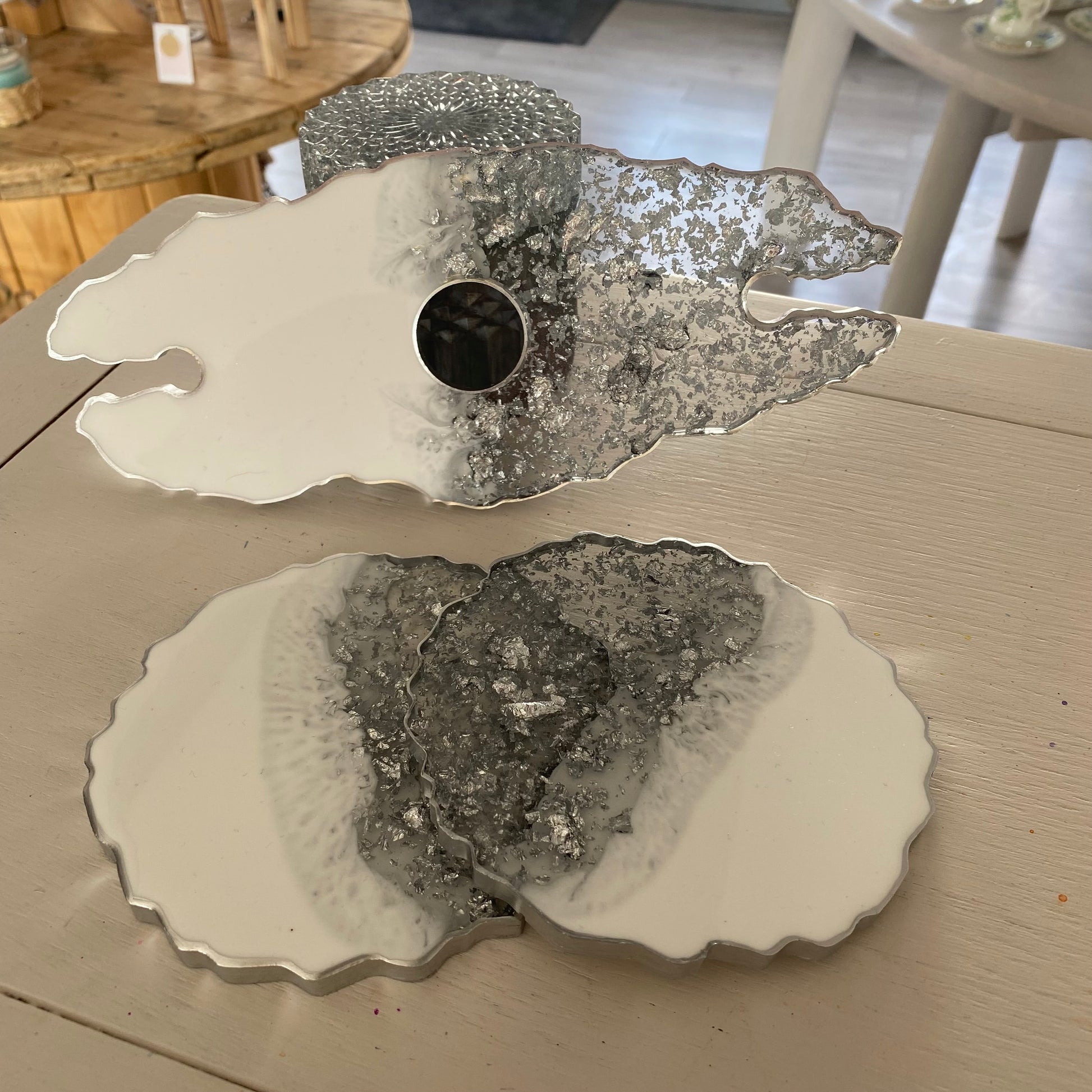 Handmade resin bottle and glass holder with coasters